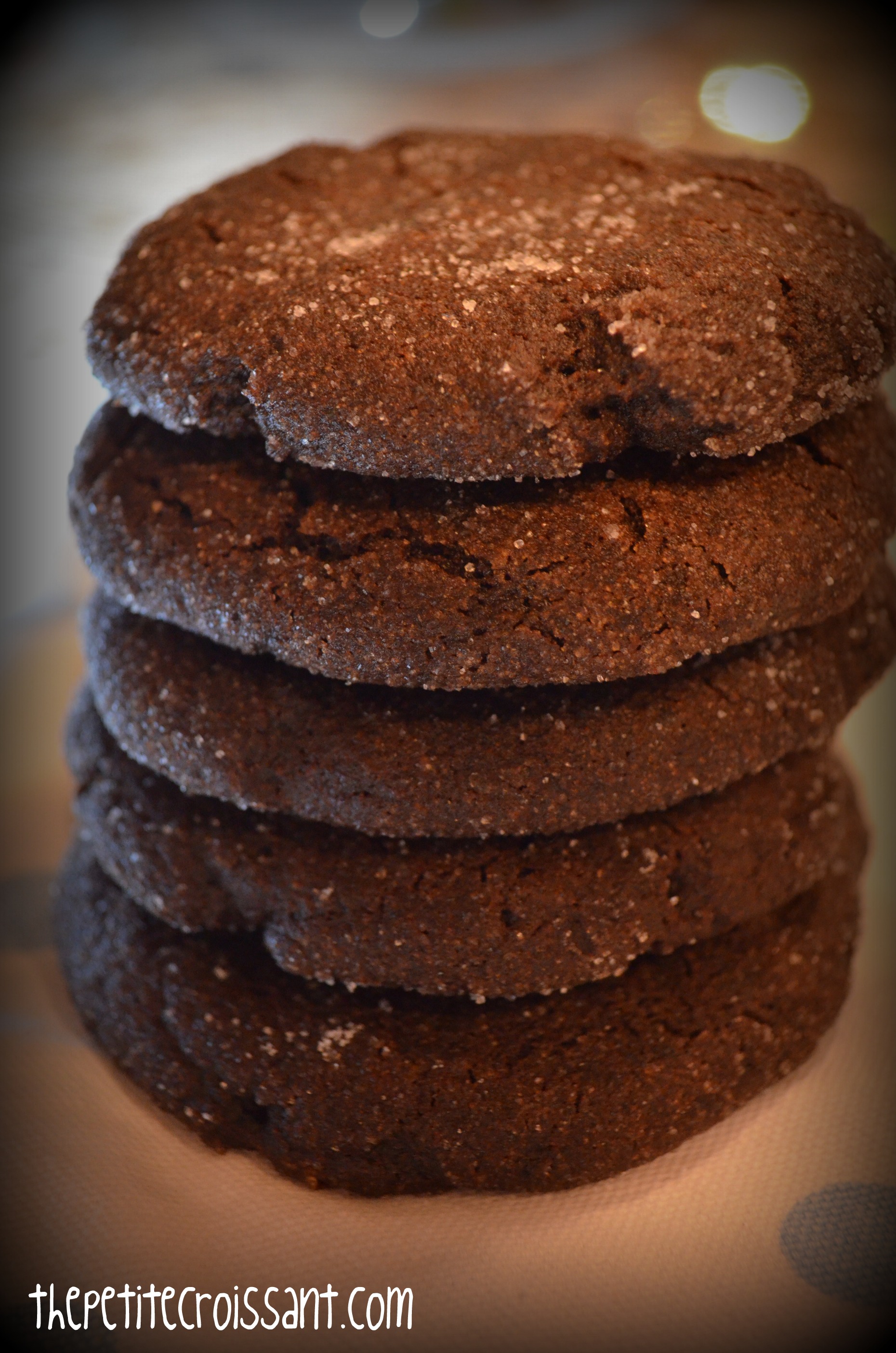 So you know my stance on cookies. The chewier the better. I do, however, make an exception for mollasses or ginger cookies. But now I’ve found a delicious chocolate molasses cookie that is chewy, so no more exceptions.