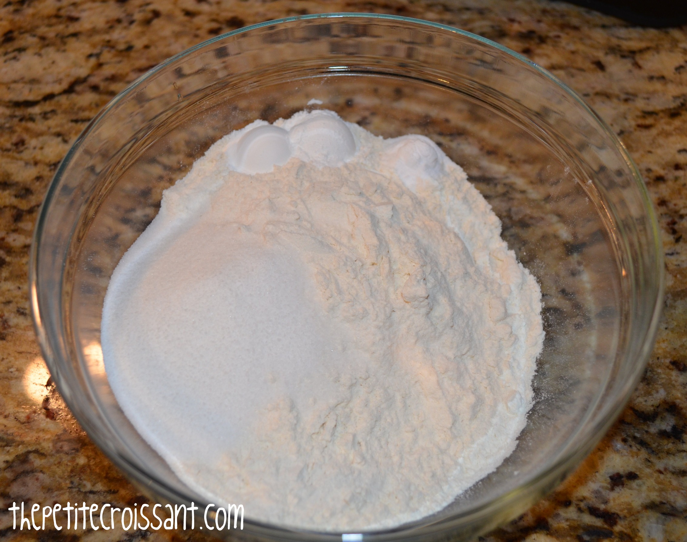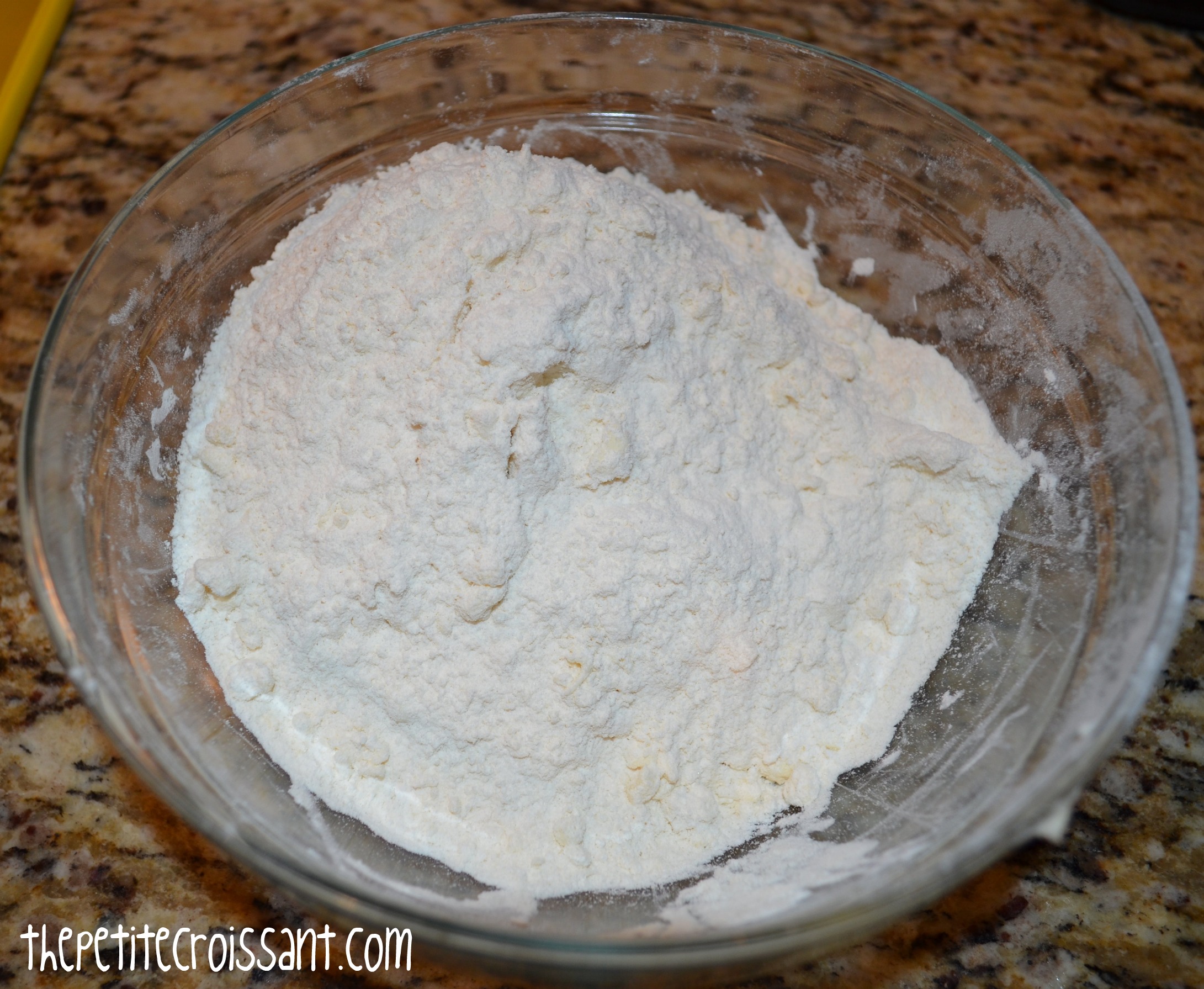 1. Mix the flour, sugar, baking powder, and baking soda in a bowl. Add the butter and work it in with a fork or pastry cutter until it is crumbly.