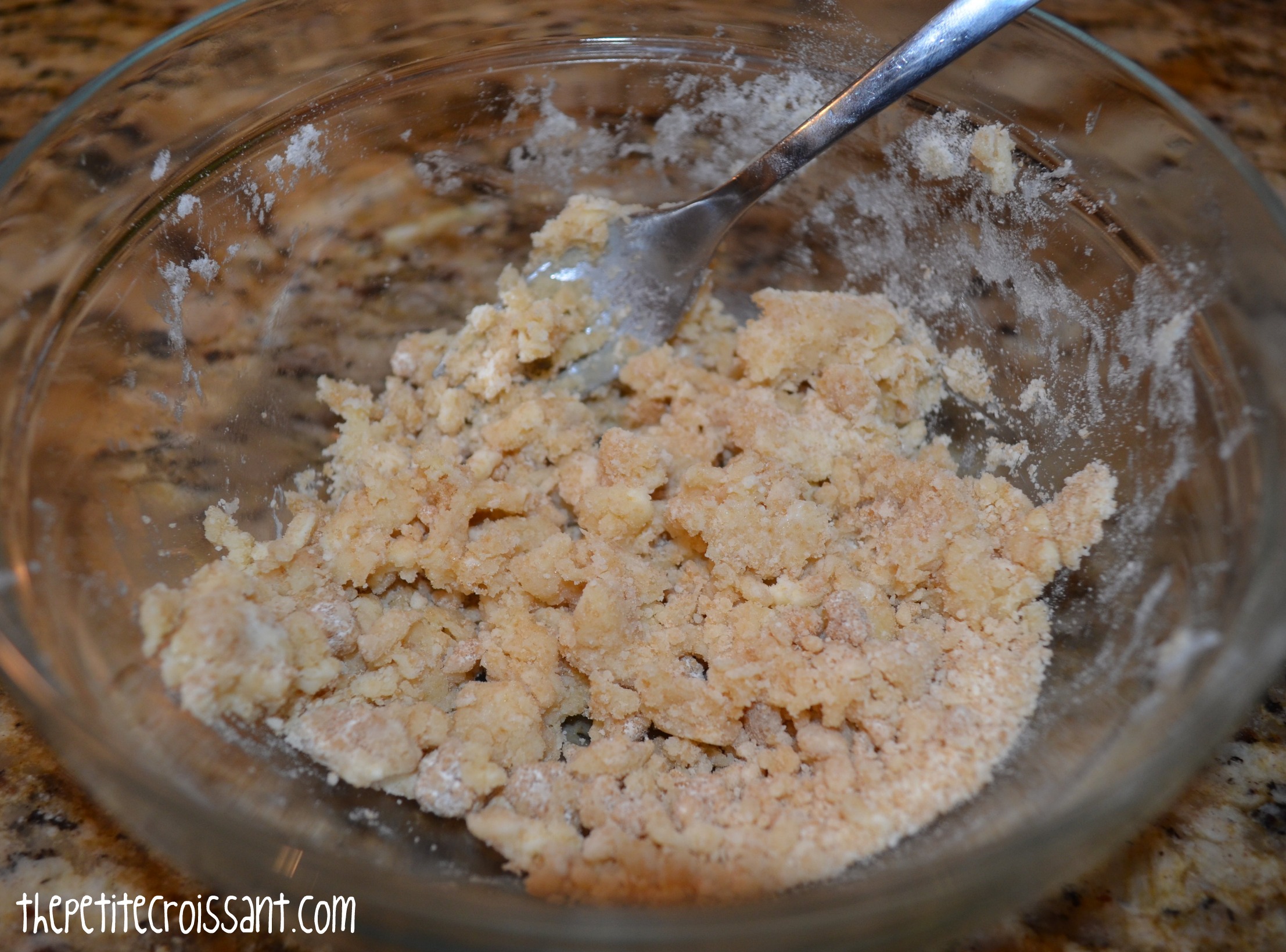 5. Preheat the oven to 400 degrees. Before taking the dough out of the fridge, mix the brown sugar and flour, and then mix in the softened butter.