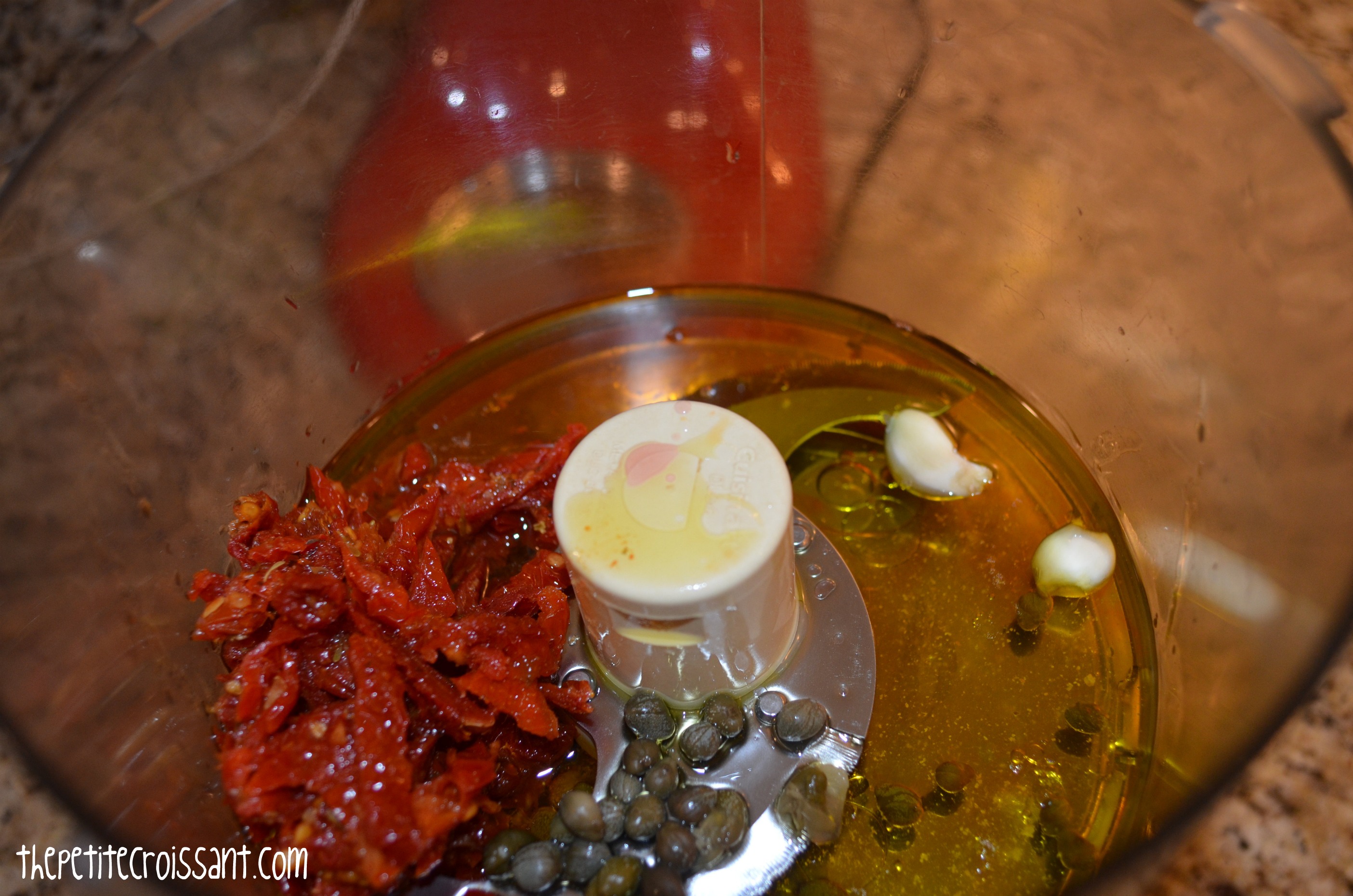 1. Put all of the dressing ingredients in a Cuisinart and pulse until smooth. Set aside.