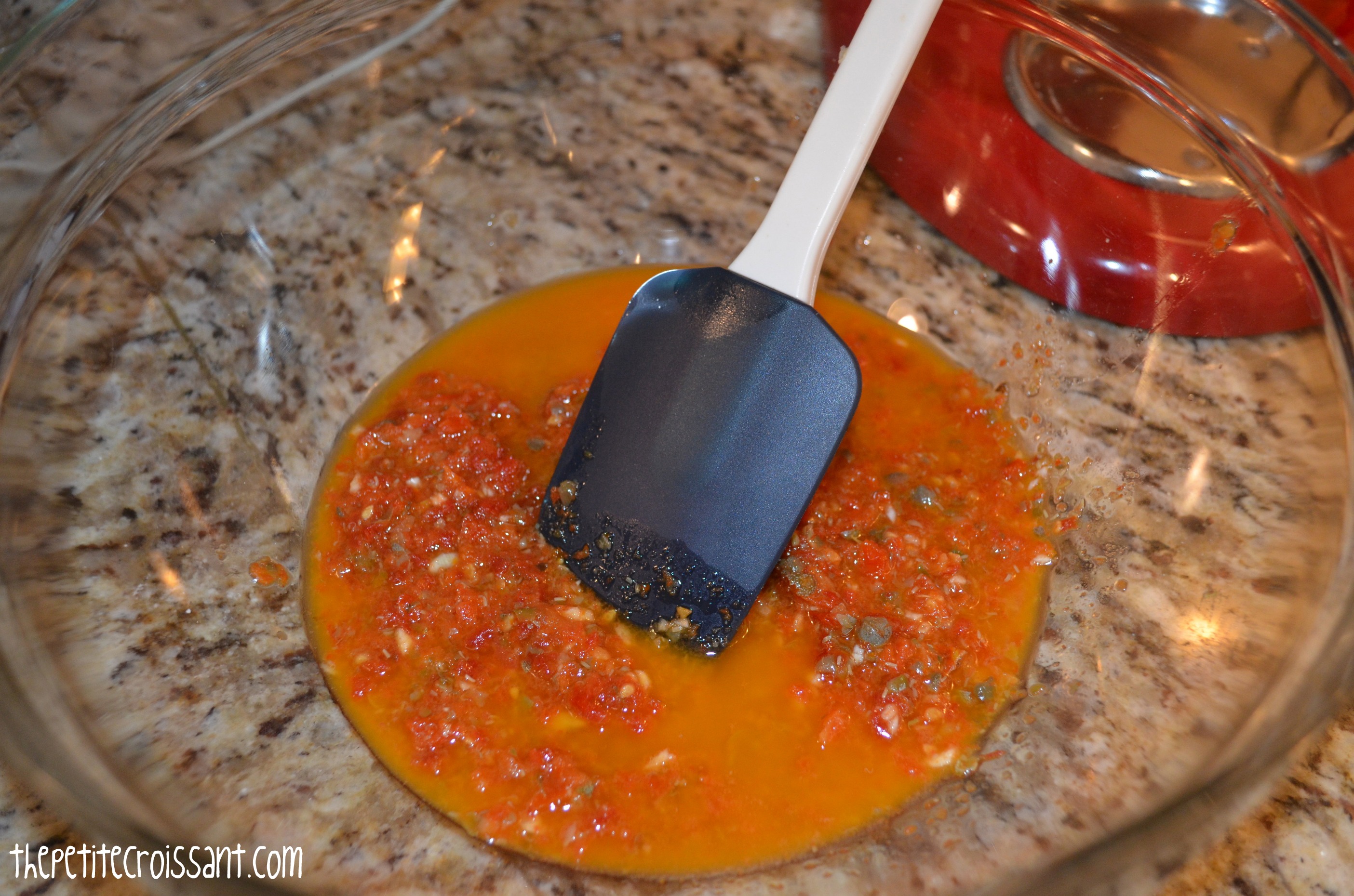 1/4 cup red wine vinegar (I ran out and did half regular vinegar, and totally tasted fine)