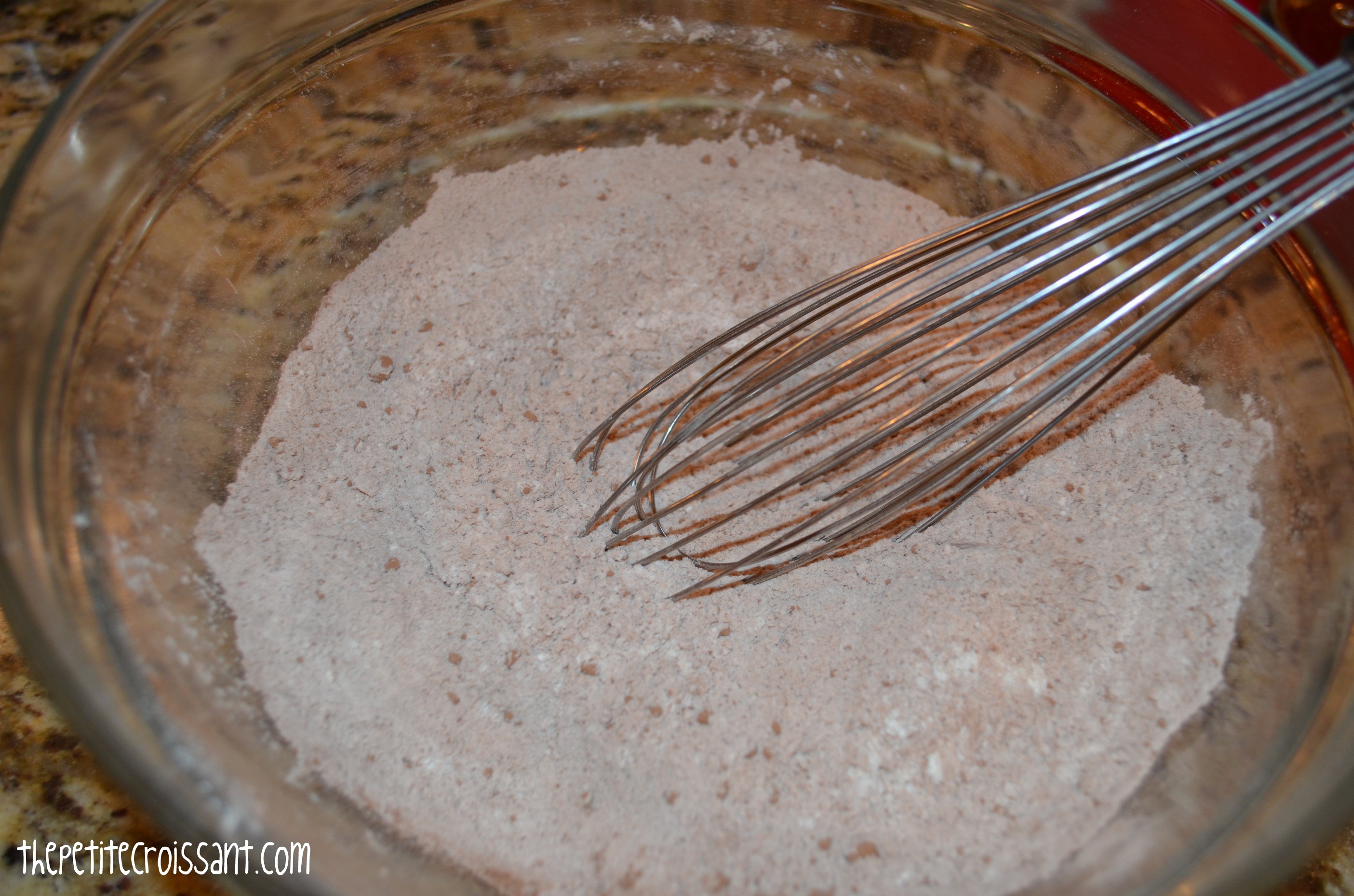 1. Preheat the oven to 350 degrees. In a medium bowl, mix flour and cocoa powder with a whisk. Set aside.