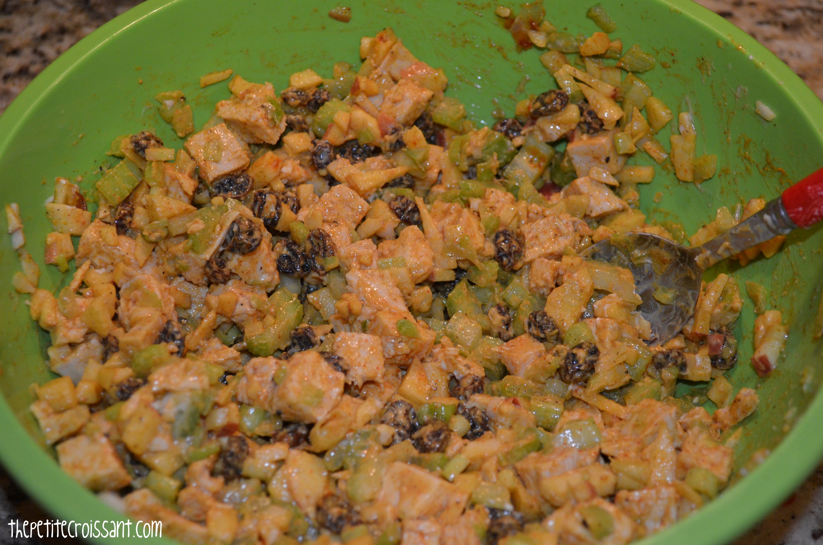The chicken curry salad is good with chopped carrots and roasted slivered almonds on top. Enjoy with whatever you choose to add!