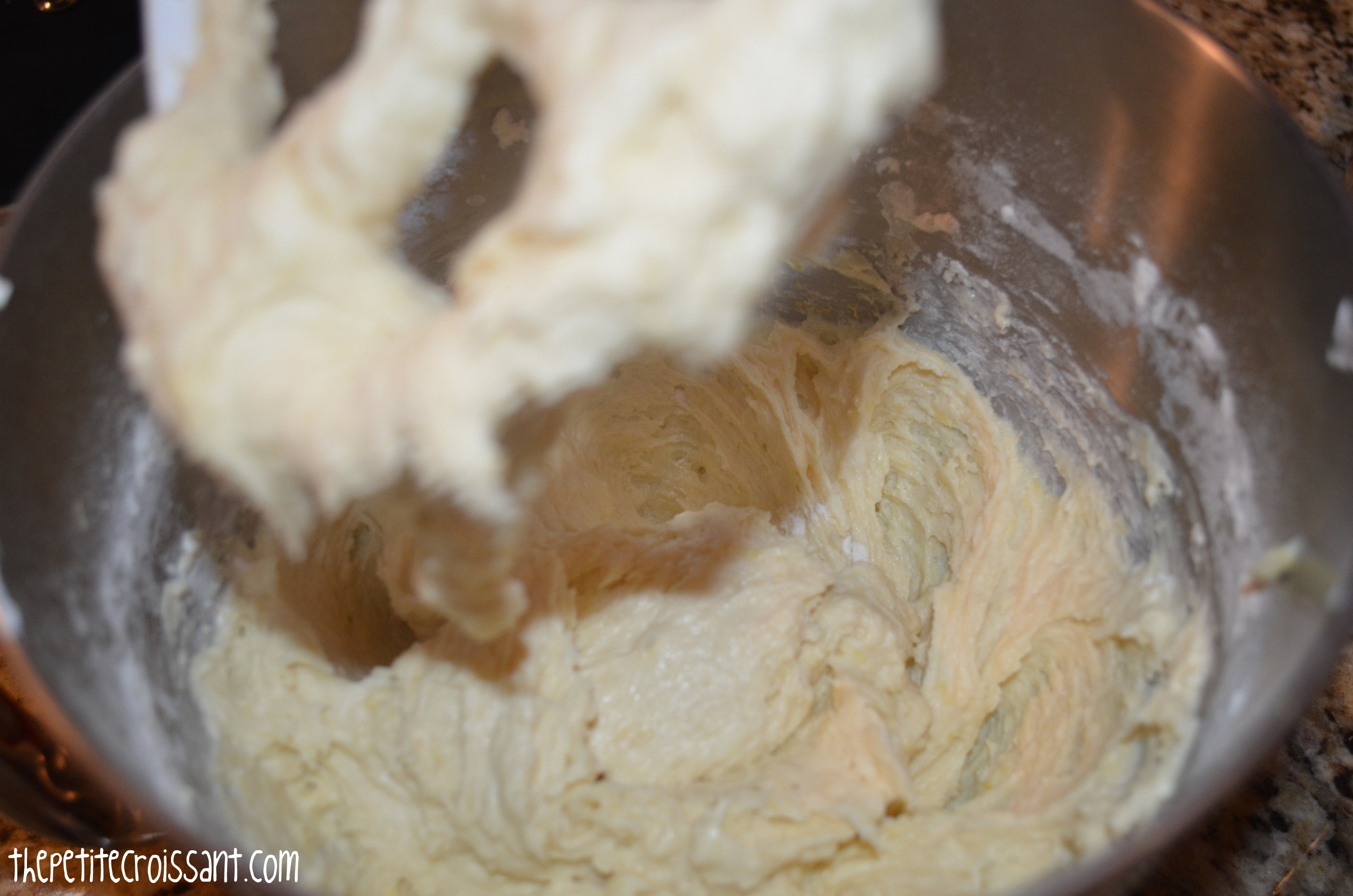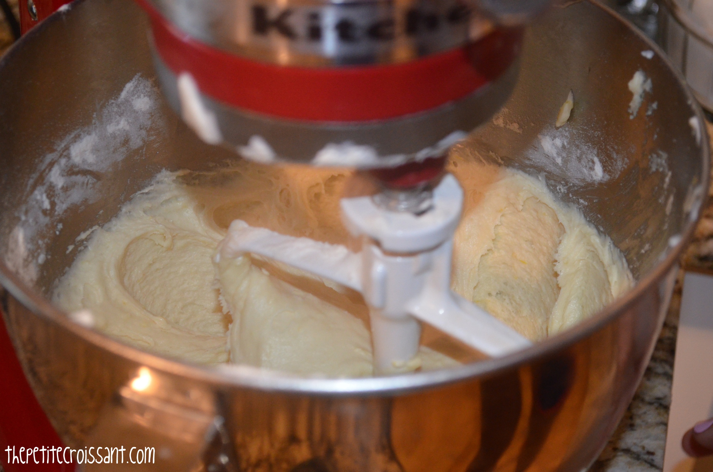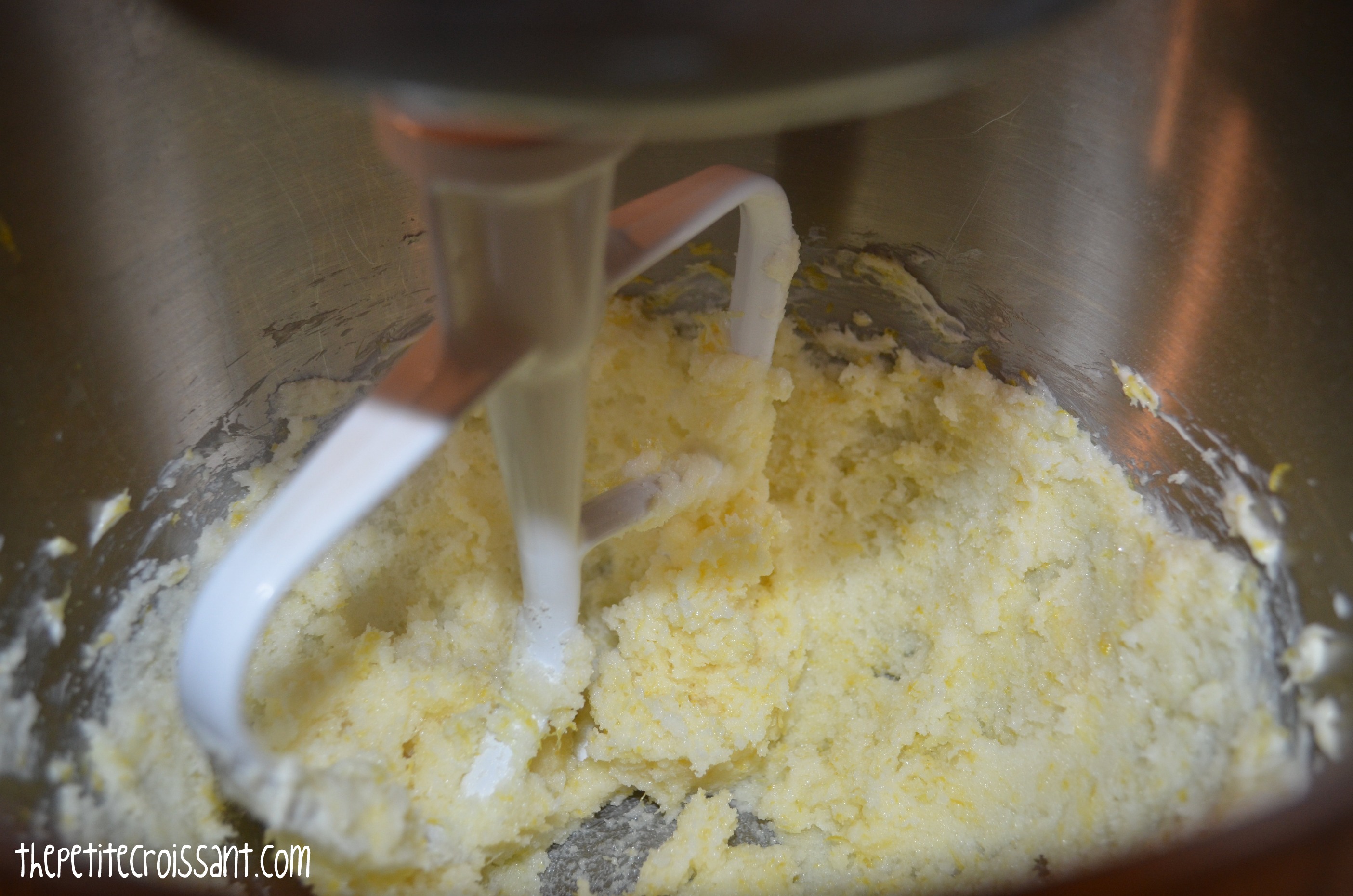 3. In the bowl of your electric mixer, beat the butter, sugar, and lemon zest on high until soft. Add the eggs, using a spatula to wipe down the sides after each egg. Beat in 1/3 of the flour, until mixed, and then add the lemon juice and 1/2 the sour cream. Once mixed, add another 1/3 of the flour, followed by the rest of the sour cream, and then the rest of the flour. Use your spatula to make sure everything is scraped from the sides and mixed in. Finish by adding the poppy seeds.