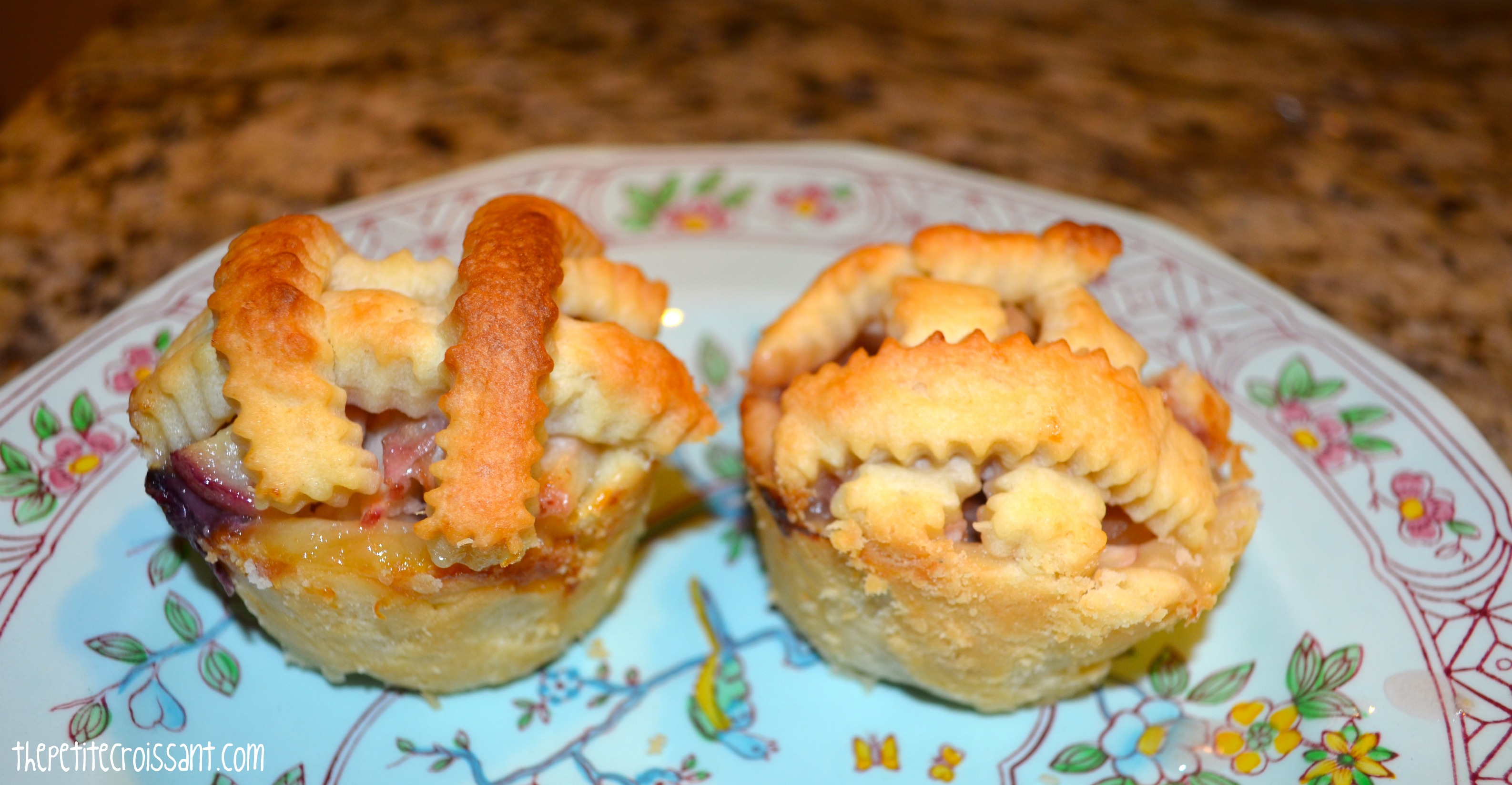 I just made these mini pies for a friend who came over for dinner because it was just the two of us and there was no way we were going to eat a whole pie, but these would be great for a party. I’ve mentioned this before, but I think people at parties always do better with mini desserts that they can just grab off a plate, and not something they have to cut and serve for themselves.