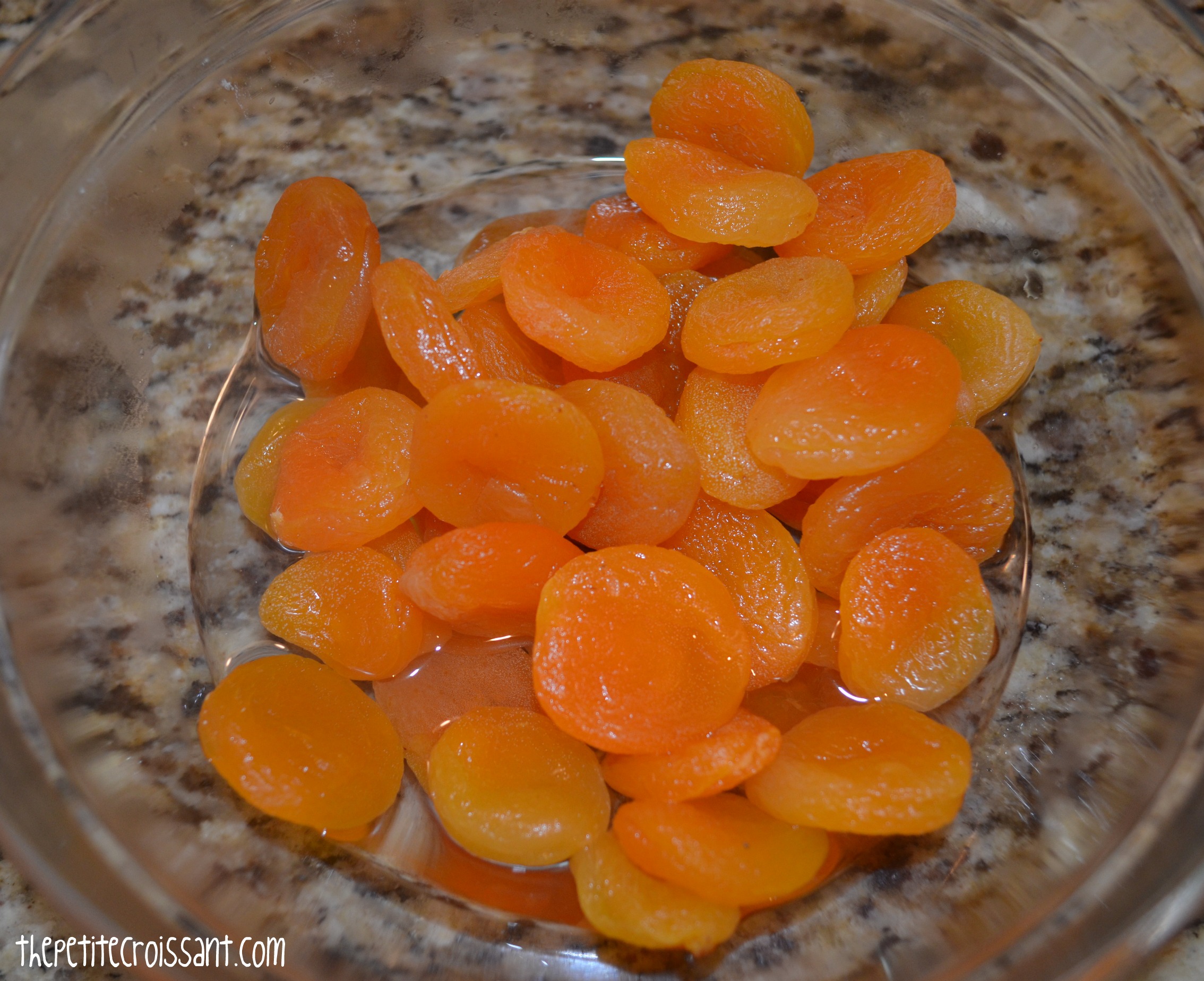 2. Boil the 3/4 cup of water. Pour it over your dried apricots in a heatproof bowl. Let this sit for 25 minutes – the apricots will absorb the water and plump up.
