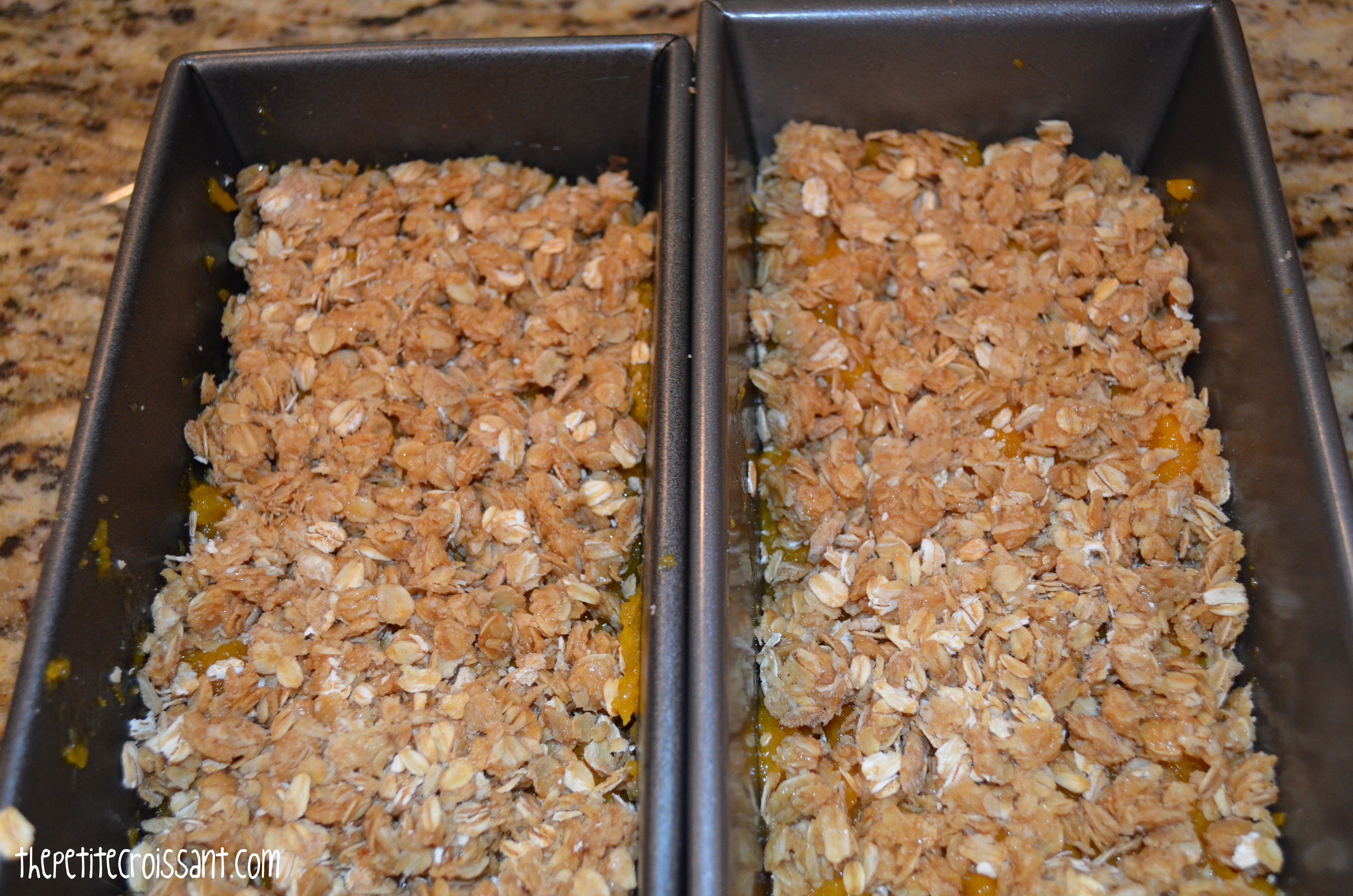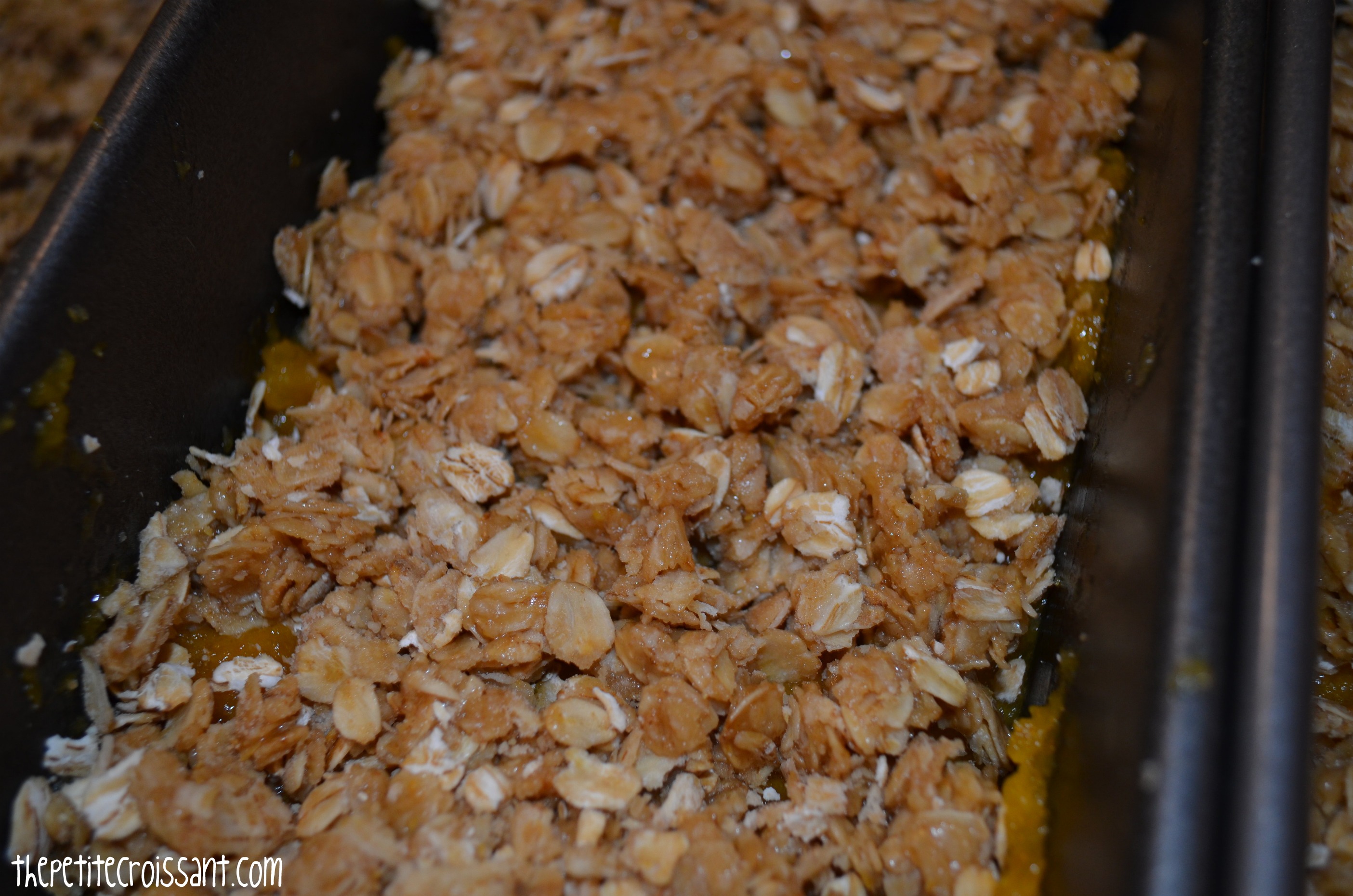 6. Pour this apricot mixture over the crust and then crumble the remaining crust on top.