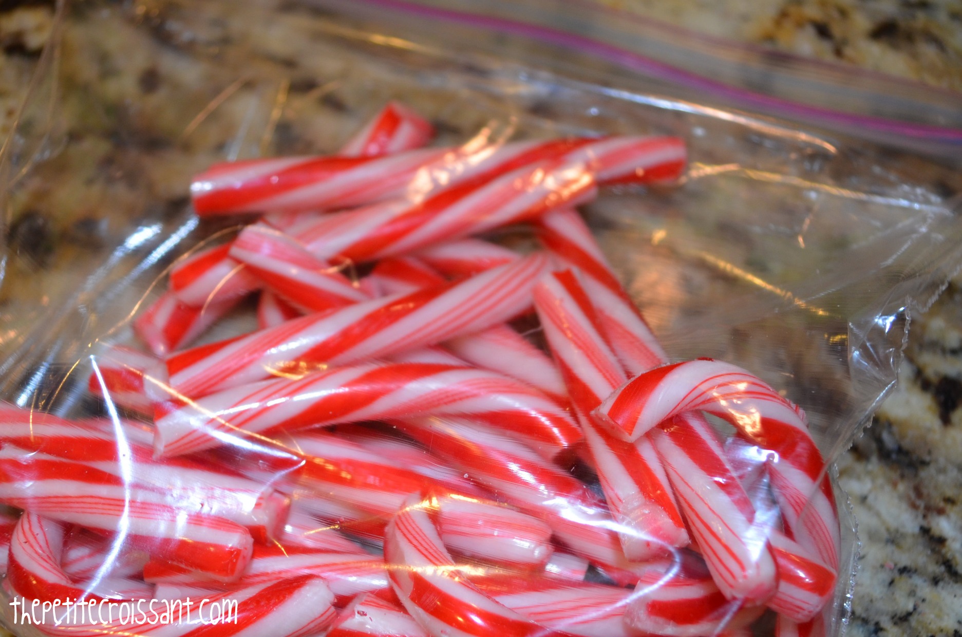 6 crushed candy canes (just put them in a plastic bag and hit with something heavy to crush them)