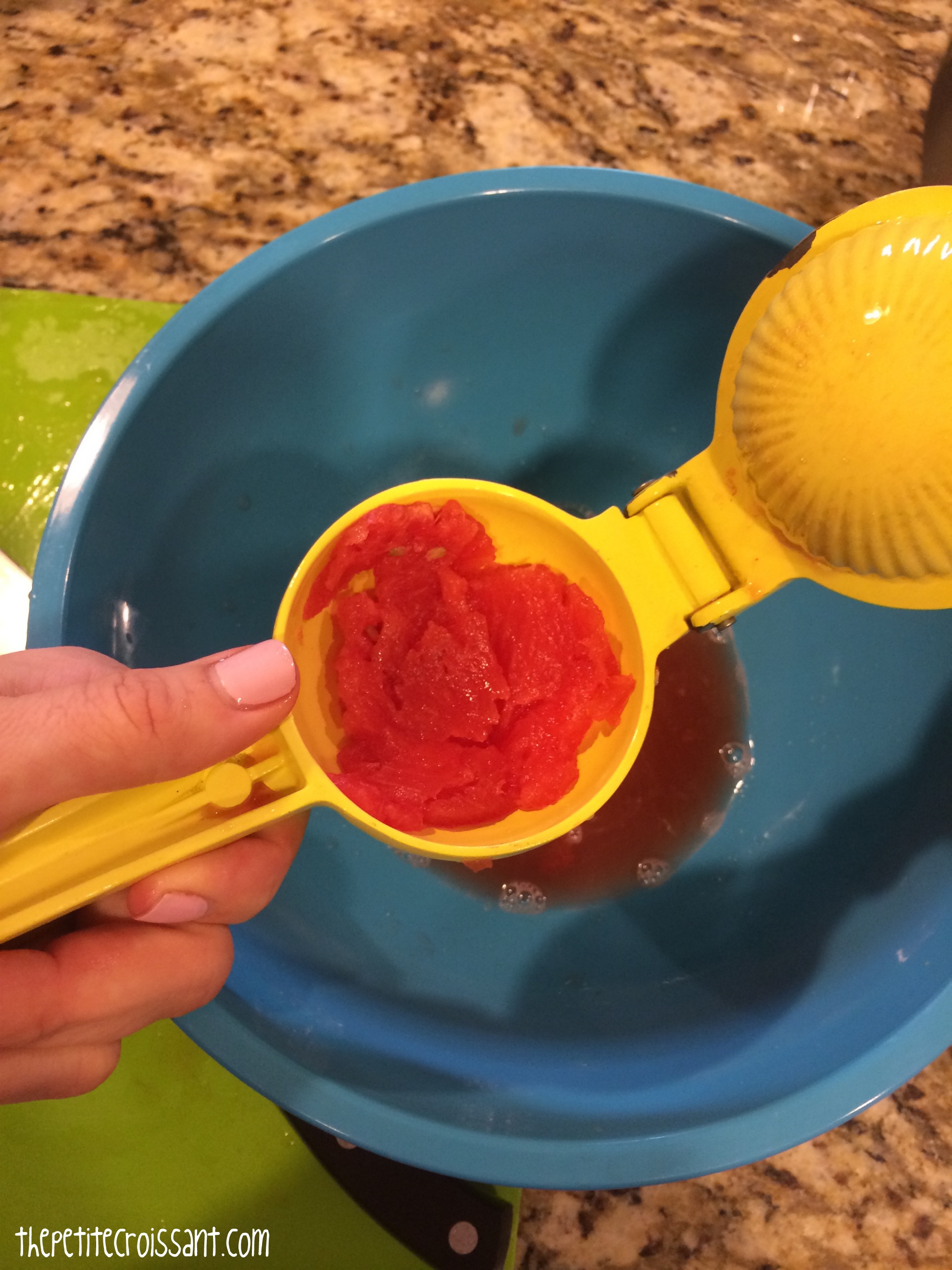 1. Prepare your watermelon juice. I just used my lemon juicer to juice the watermelon into a bowl, and removed any seeds that got through.