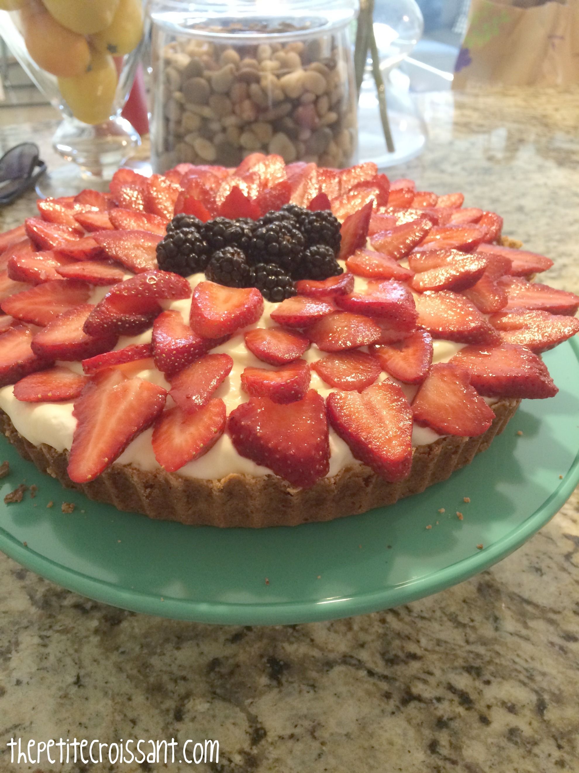 What is better for a summer gathering than a fruit tart? Nothing really. This one happens to be slightly more complicated (and involves some prep work ahead of time, so make sure to plan ahead), but it is so delicious that it is definitely worth the extra work. The homemade cream is so amazing! And the best part is, you can decorate it with any kind of fruit and can get creative with your designs.