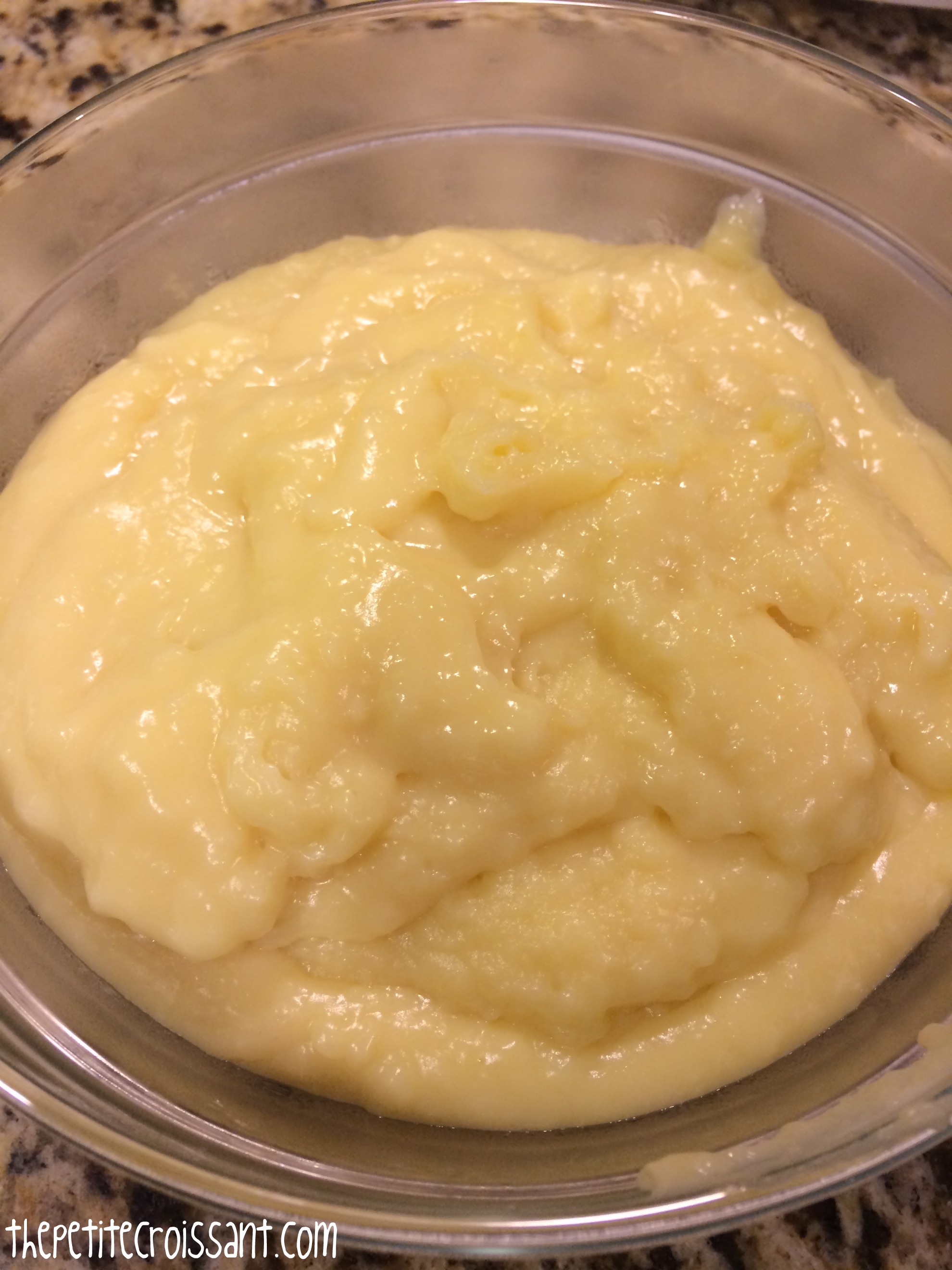 4. Once cool, place the mixture in a hand mixer and beat for two to three minutes until creamy (you will then use this pastry cream in step 7).