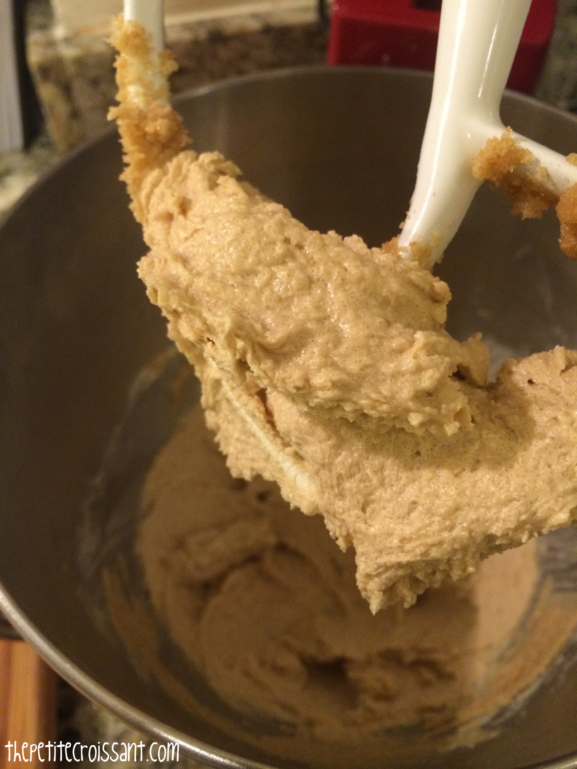 2. In the bowl of your stand mixer, cream the other ½ cup of butter with brown sugar. Let it mix for 3-5 minutes to get really smooth. Add the vanilla and molasses. Now pour in the cooled butter and sugar and continue beating for another 2 minutes.