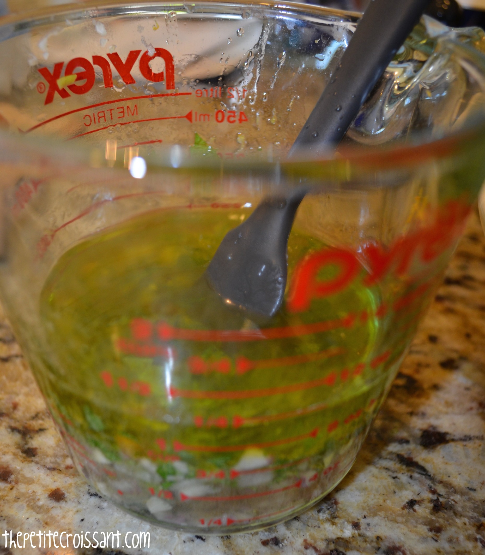 3. While the veggies are cooking, prepare the dressing. Mix the shallot, lemon juice, garlic, mint, white wine vinegar, and olive oil.