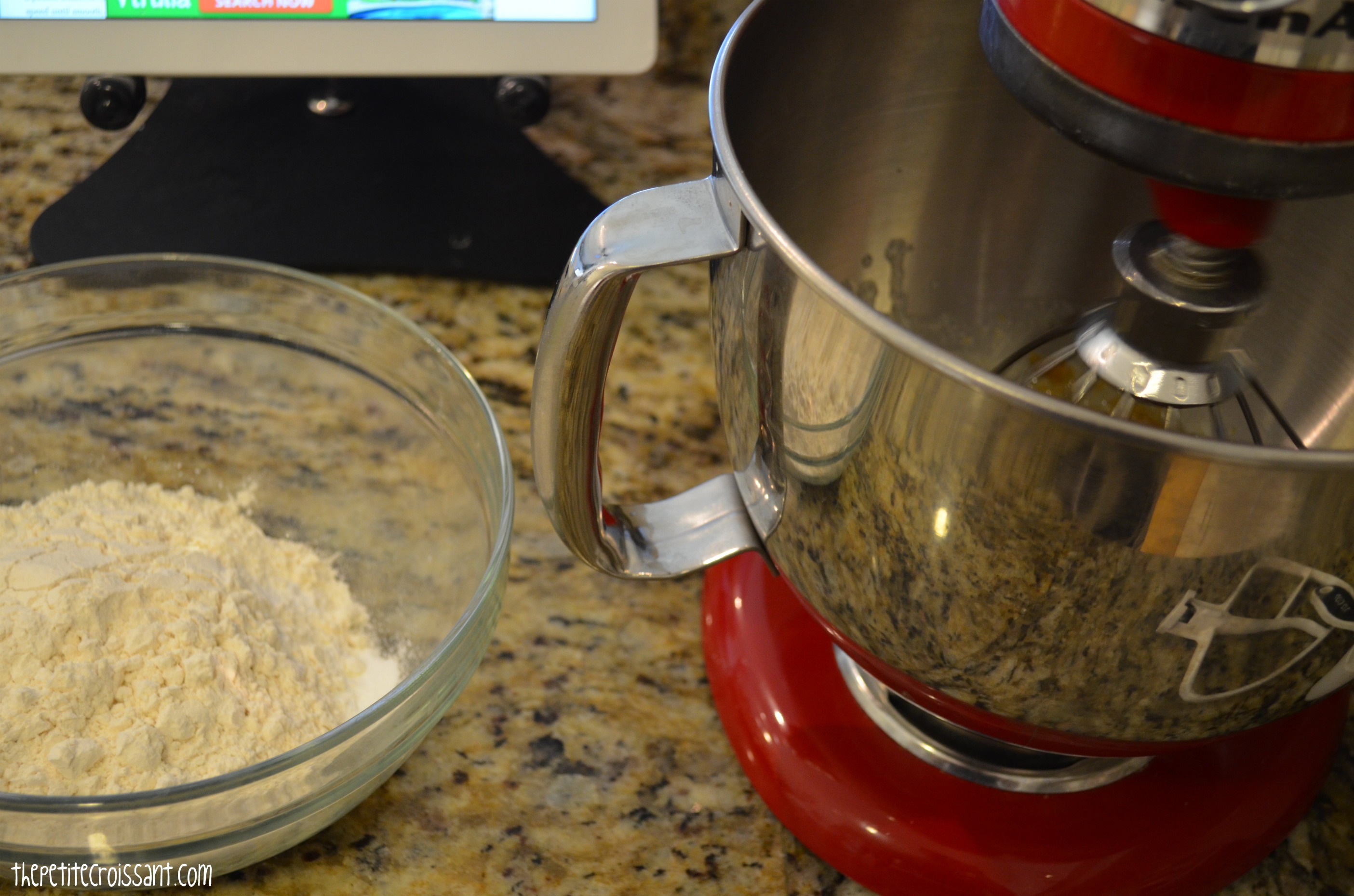 2. Mix the flour, baking powder, and baking soda, and set aside. Pour the melted butter in the bowl of your electric mixer fitted with the whisk attachment. Whisk in the two sugars. Add the egg, yogurt/sour cream, milk, vanilla, and lemon zest. Whisk until combined. Slowly add the dry ingredients and mix until the batter is smooth. Add the blueberries and mix with a spatula.