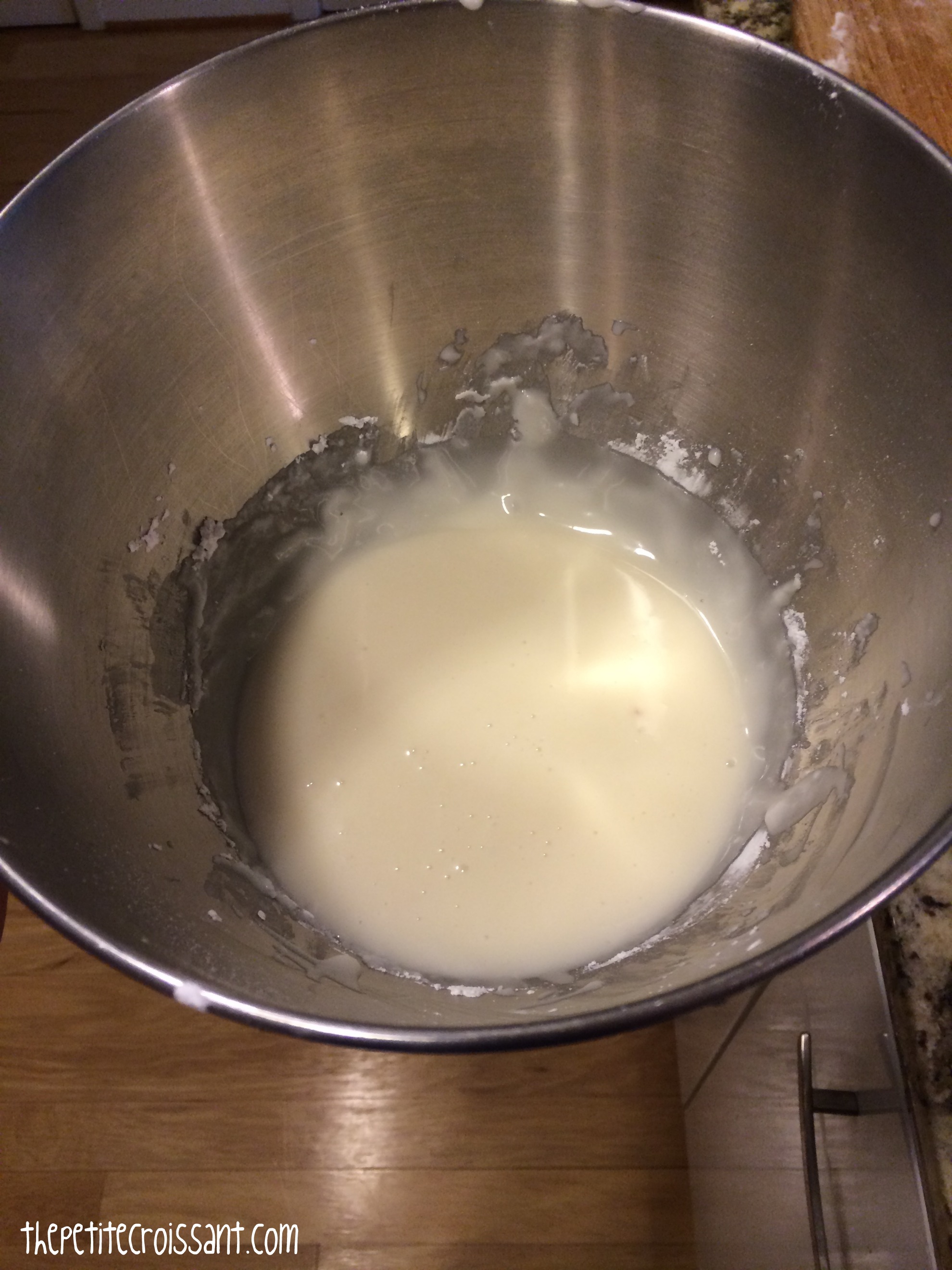 5. While the oil is heating, prepare your glaze by whisking in your electric mixer the powdered sugar, vanilla, and water. Set aside.