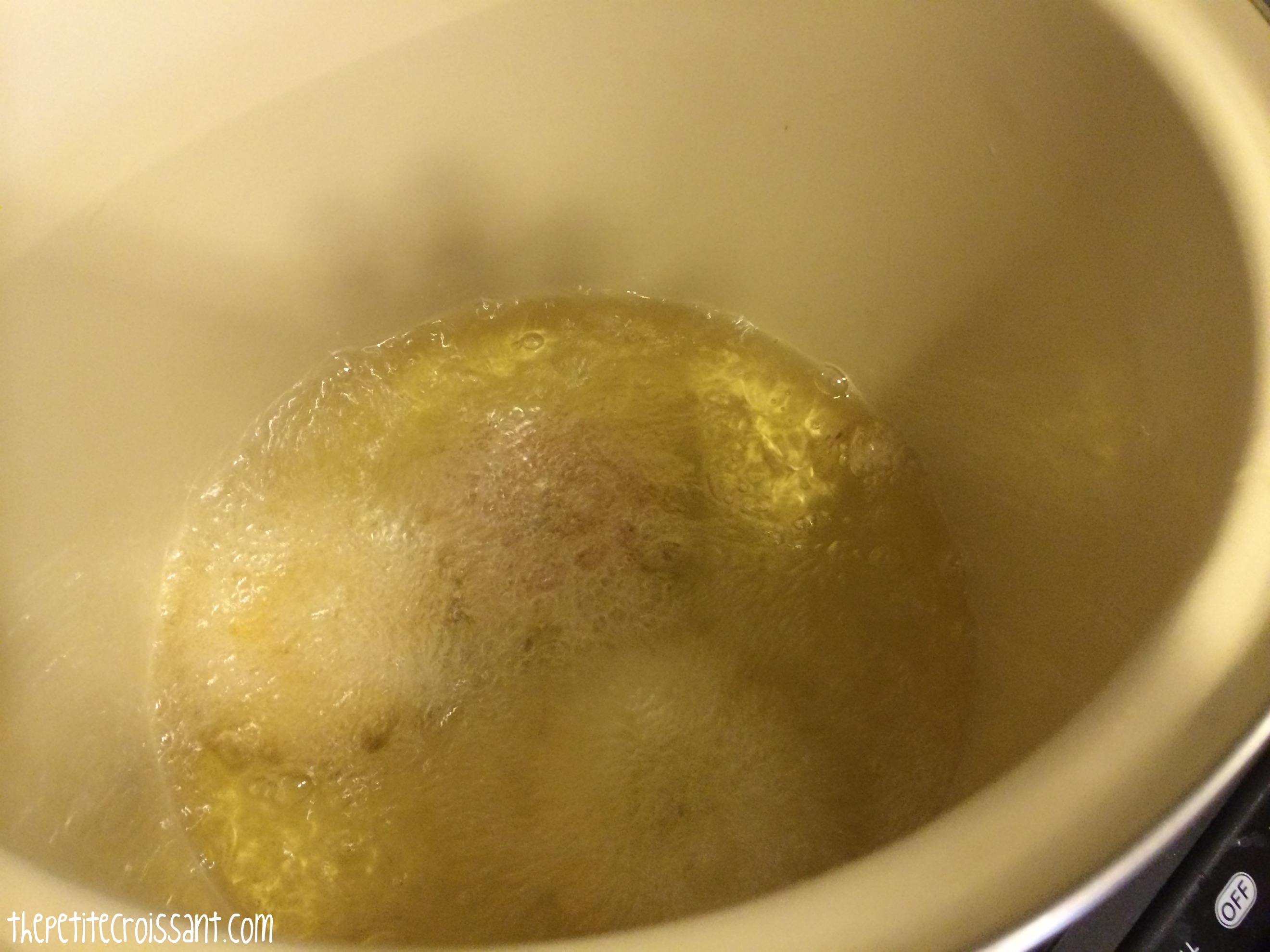 4. Prepare the oil on the stove by placing it in a pot with high sides. Use a thermometer to monitor the heat. You want it to get to about 250-275. You may have to constantly monitor the heat (turning it up and down to maintain a good heat).
