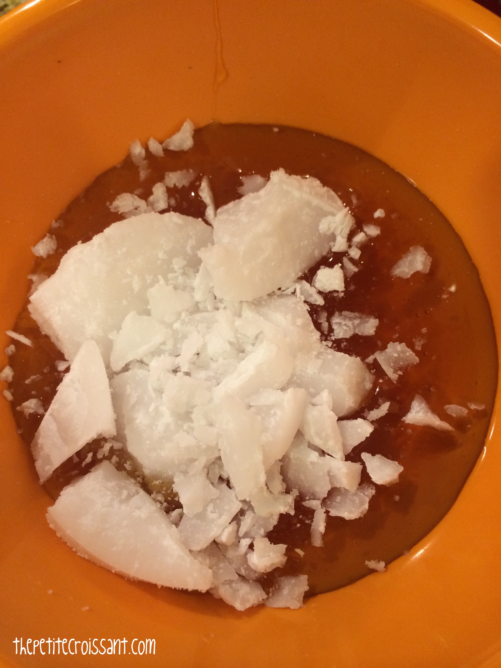 4. In a small heat proof bowl, place the honey and coconut oil and heat for 40 seconds, or until it is hot enough for the coconut oil to dissolve when you stir it.