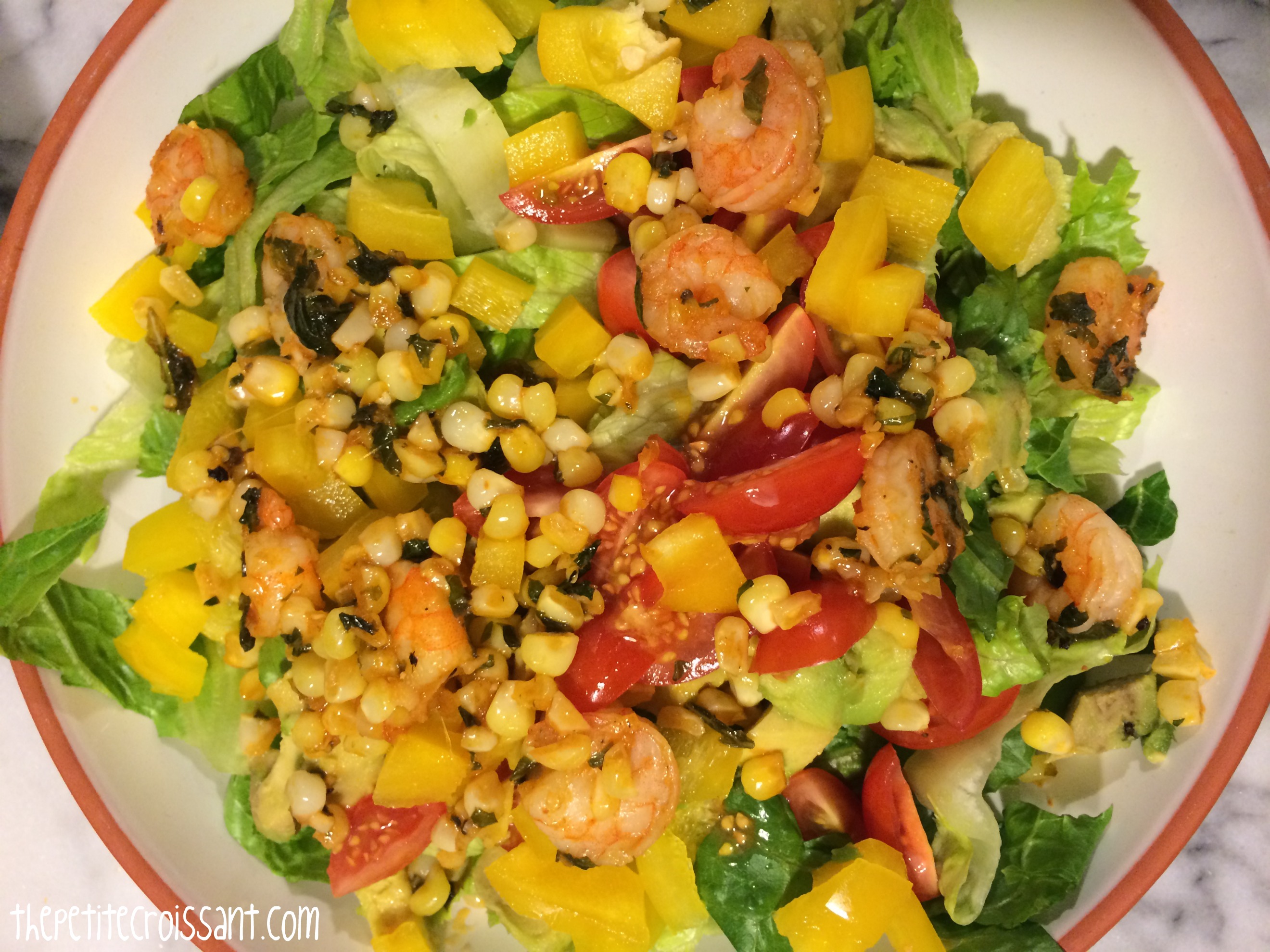 If you’re looking for an easy weeknight salad to make before we get into true fall weather where all we want to eat is soup and carbs, here’s a good option! The shrimp is delicious, and the salad has a great mix of veggies.