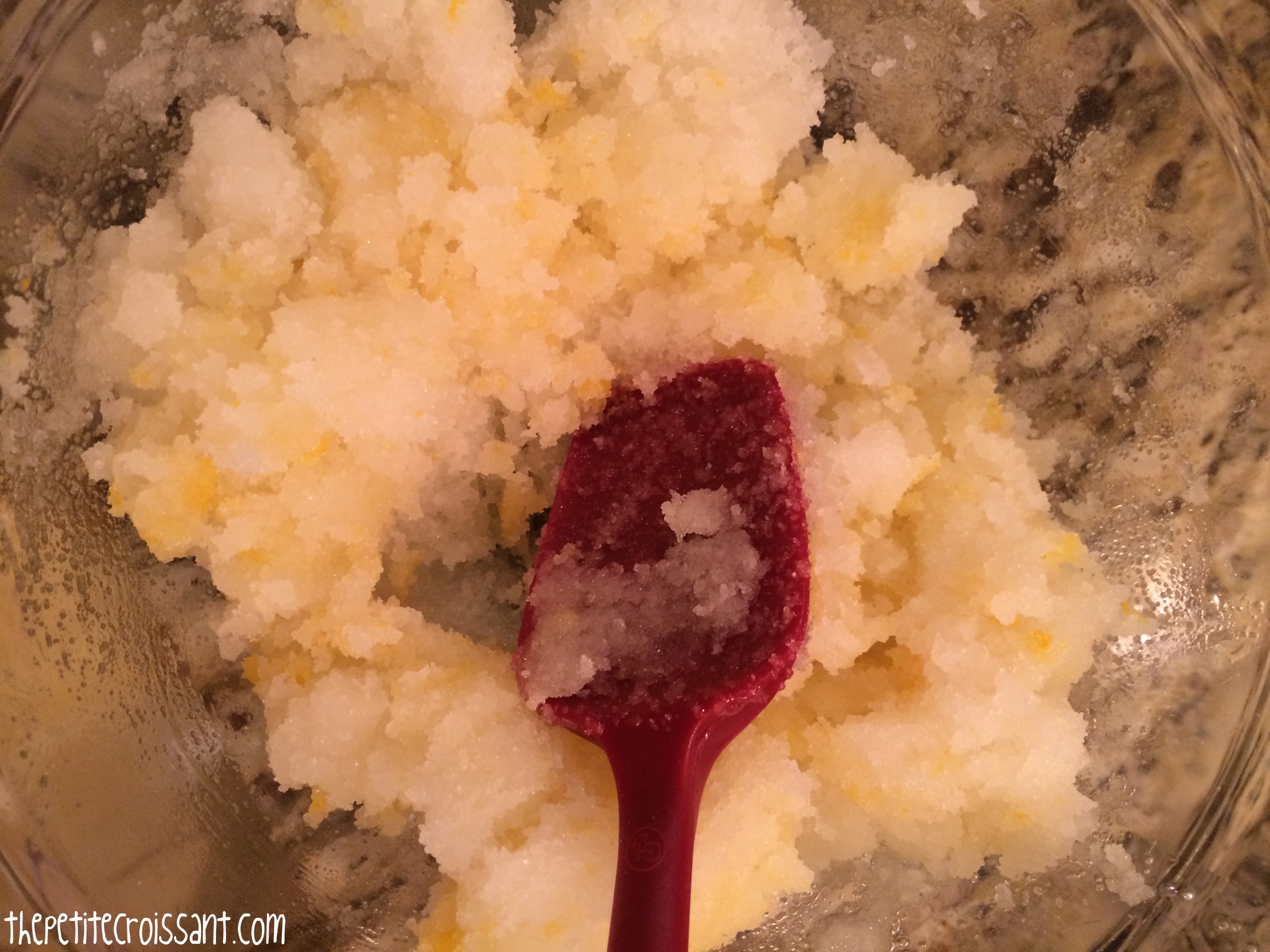 3. In an electric mixer, beat the sugar, orange rind, and vegetable oil. Mix in the eggs and then scrape down the sides of the bowl.