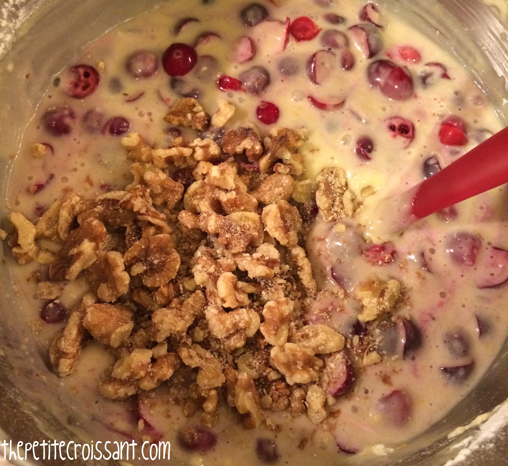 Now that it is November, cranberries are starting to appear everywhere. Although cranberries by themselves can be tart, the sweetness of this bread and the orange even out the flavor. This would make a great breakfast treat over Thanksgiving weekend if you’re hosting any family!