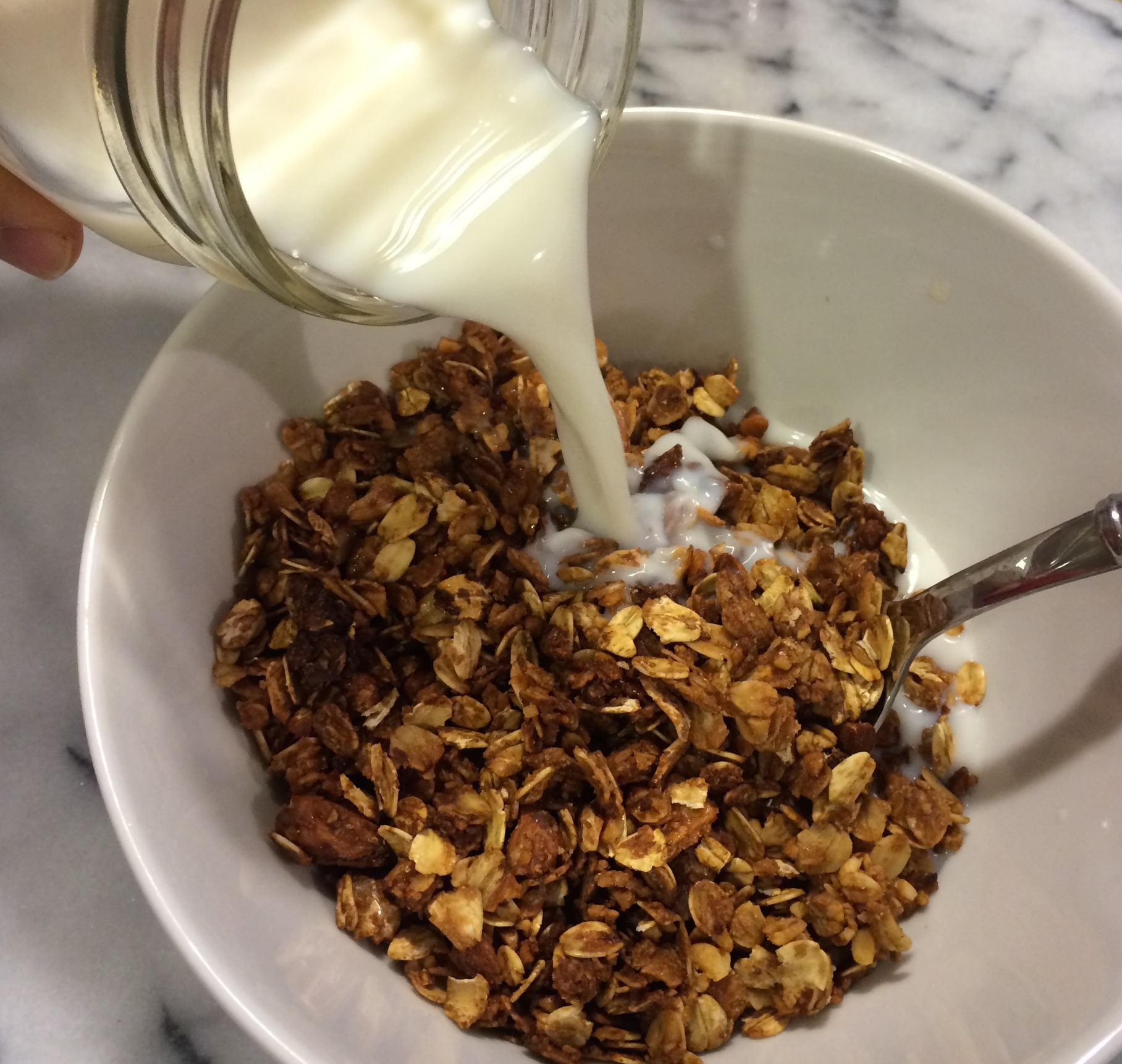 I love making a big batch of granola on the weekend because it then gives me something to eat all week for breakfast that simply involves pouring it into a bowl and adding some milk (almond milk in my case). This recipe uses coconut oil, which perhaps was done by the original source to make it vegan, but for me, I just love the taste of coconut and how light it keeps this granola. It’s Sunday morning still, so go on, make yourself some granola, and you’ll be thanking me every day this week ahead as you enjoy it for breakfast!