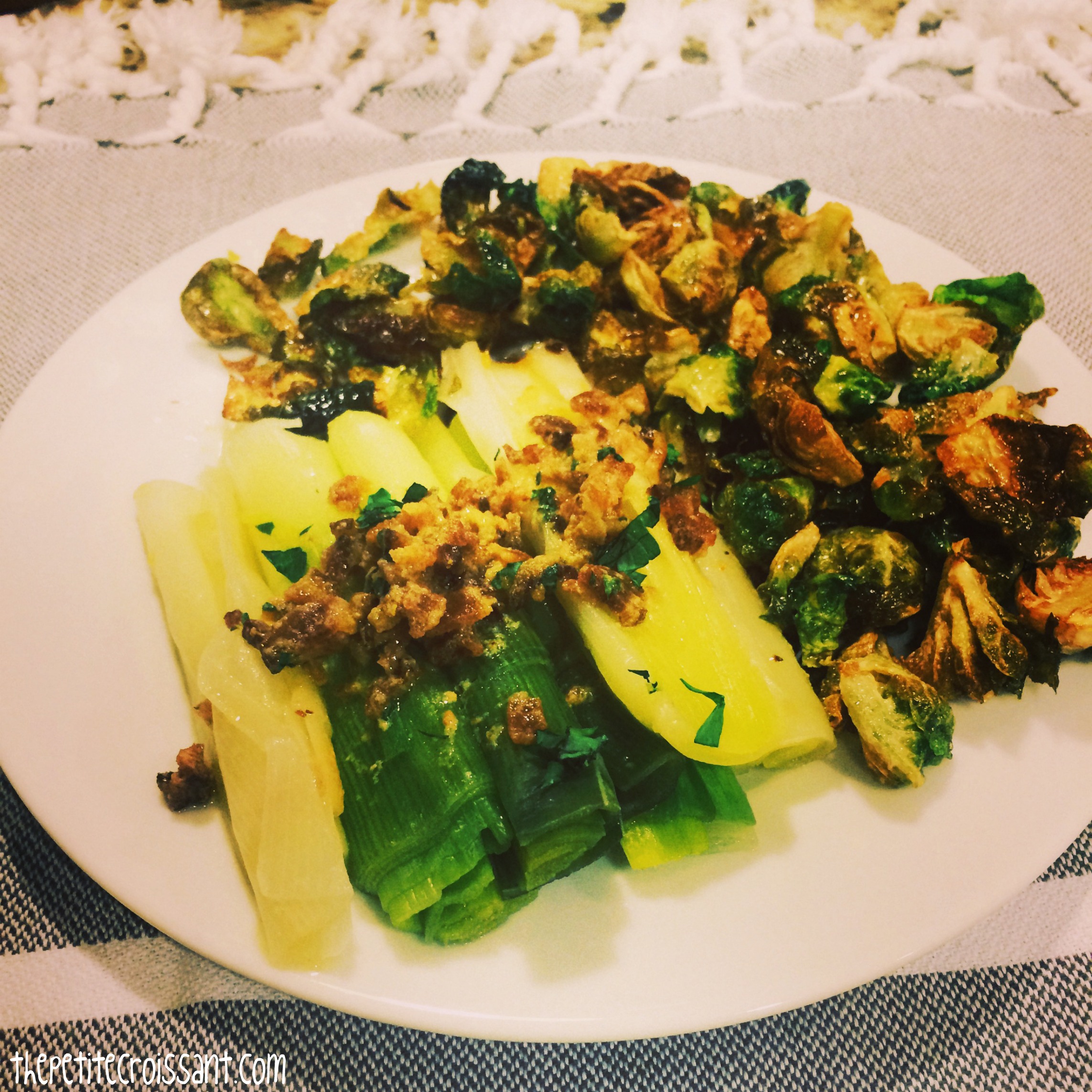 Sriracha is definitely “in” these days. But up until this point, I hadn’t really partaken in the trend. Dave loves it and keeps it in the fridge to add to dishes all the time, but this was the first time I worked it into a meal. And oh boy, I’m sorry for being a doubter. It’s delicious, especially with the honey in this recipe! It is pictured below with a leek dish that will go up on the blog next week.