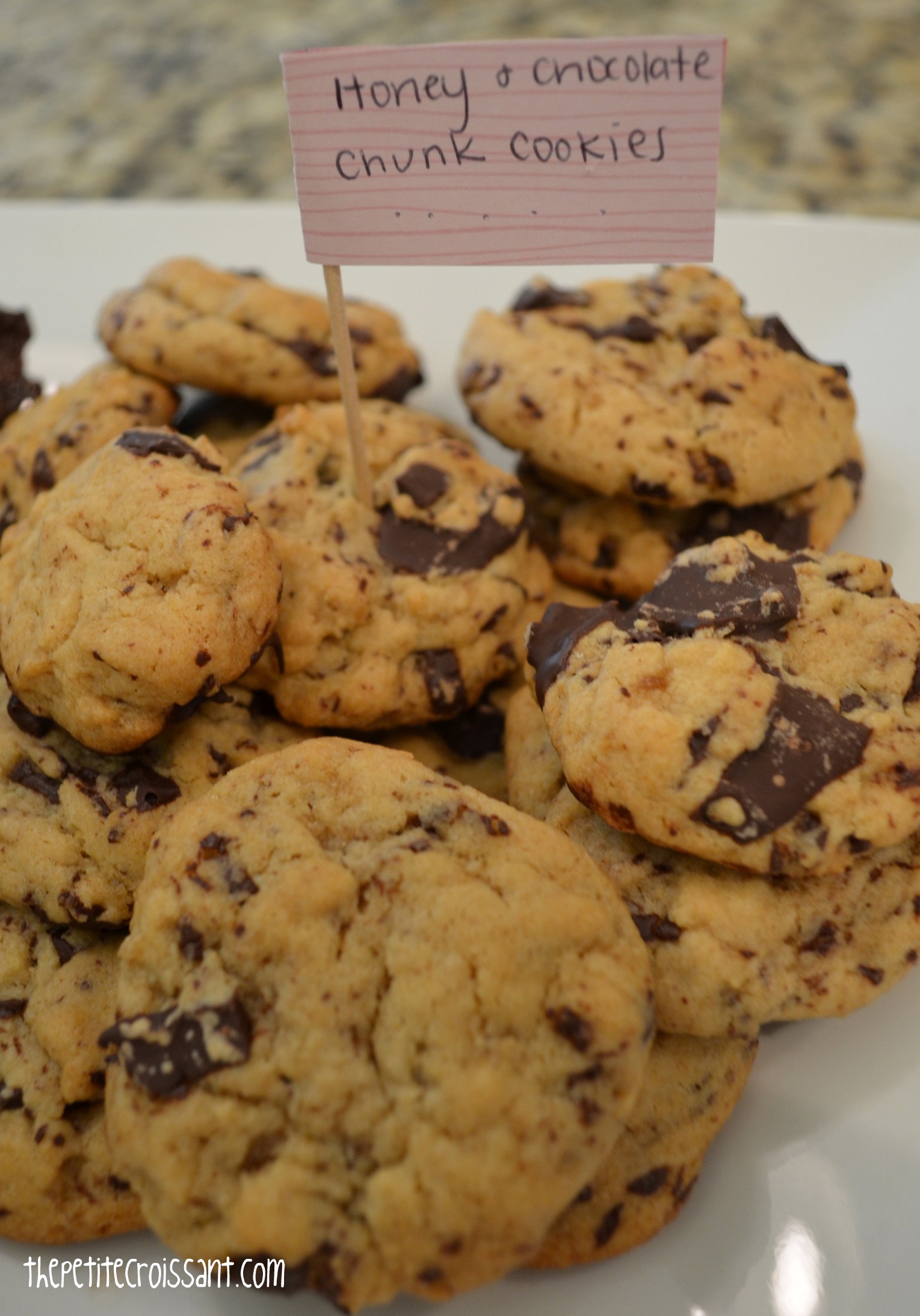 In the last year or so, I’ve started using honey a lot more in my day to day baking and cooking. I throw it in salad dressings, oatmeal, smoothies, and pies. But up to this point, I hadn’t tried it in a chocolate chip cookie. These cookies were perfect for a dessert where I was serving a bunch of different kinds of cookies because they’re small, almost bite size, and simple. They’re also incredibly easy to make!